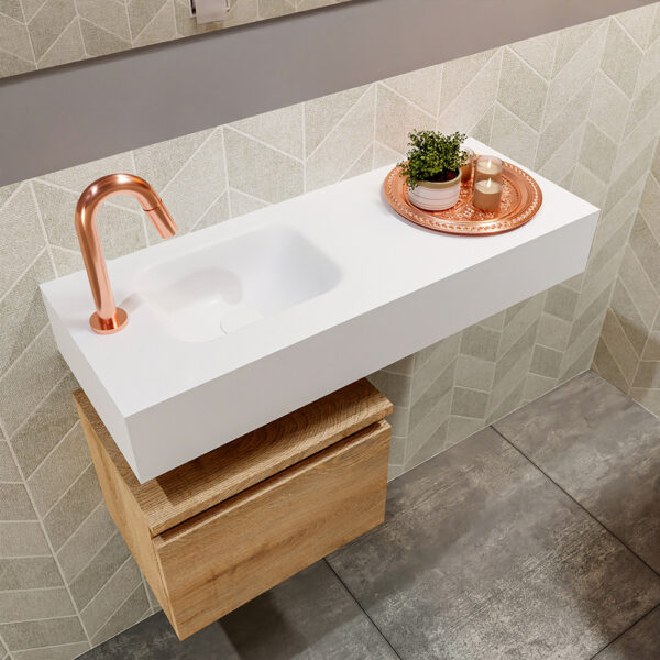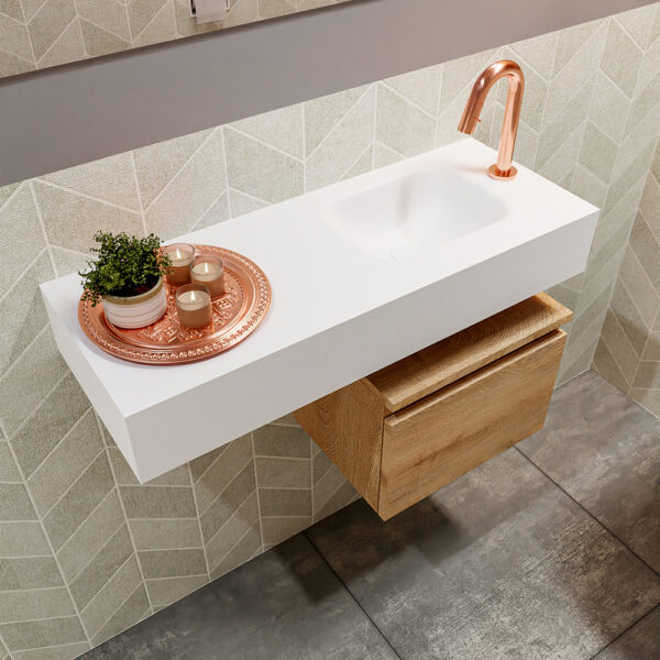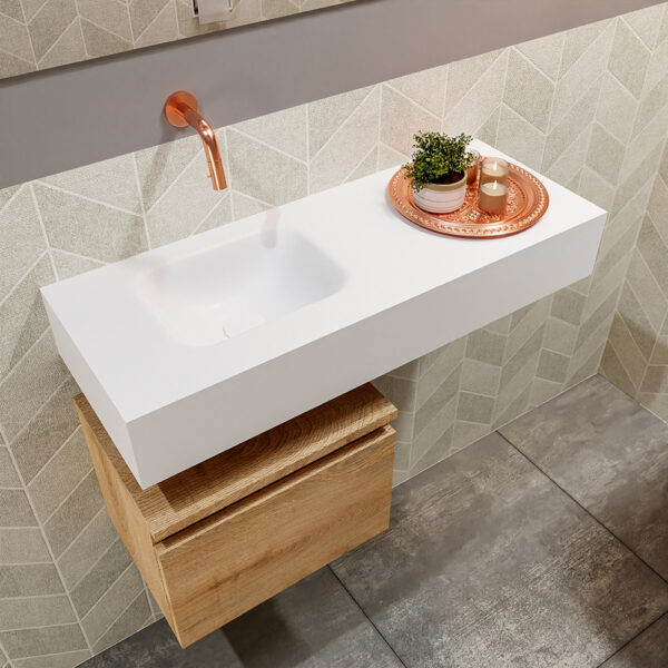 € 1.191,12 excl. BTW € 984,40Verfijnd toiletmeubel ANDOR met vrijhangende solid surface wastafel voor een elegante uitstraling! Het moderne zwevende toiletmeubel ANDOR is ontworpen om geen ruimte te verspillen en biedt een eigentijdse uitstraling aan je badkamer. De bijgevoegde afbeelding toont de vrij hangende wastafel LEX, perfect gecombineerd met het bijpassende badmeubel ANDOR. Dit badmeubel […]