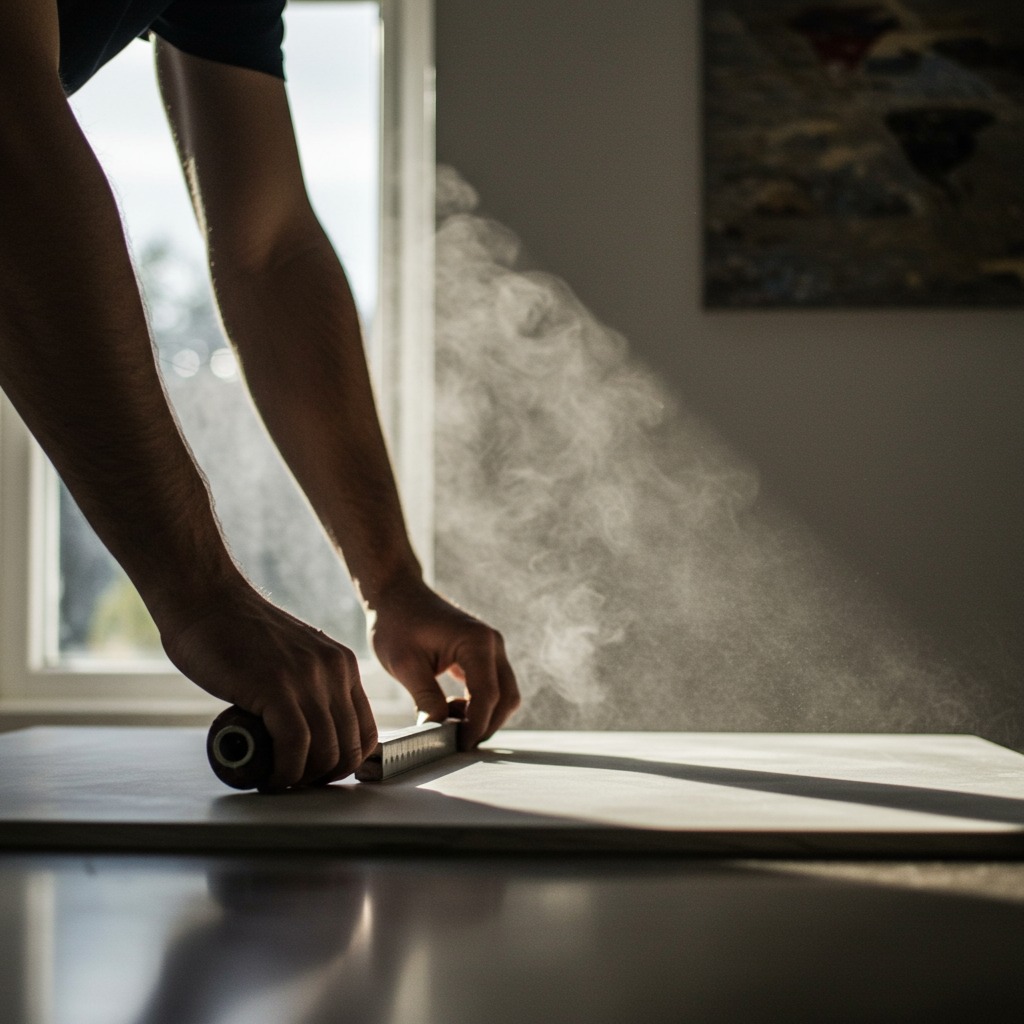 Een perfect vlakke ondergrond is cruciaal. De wand of vloer moet eerst volledig worden geegaliseerd. Zelfs de kleinste oneffenheid kan problemen veroorzaken bij het plaatsen.
