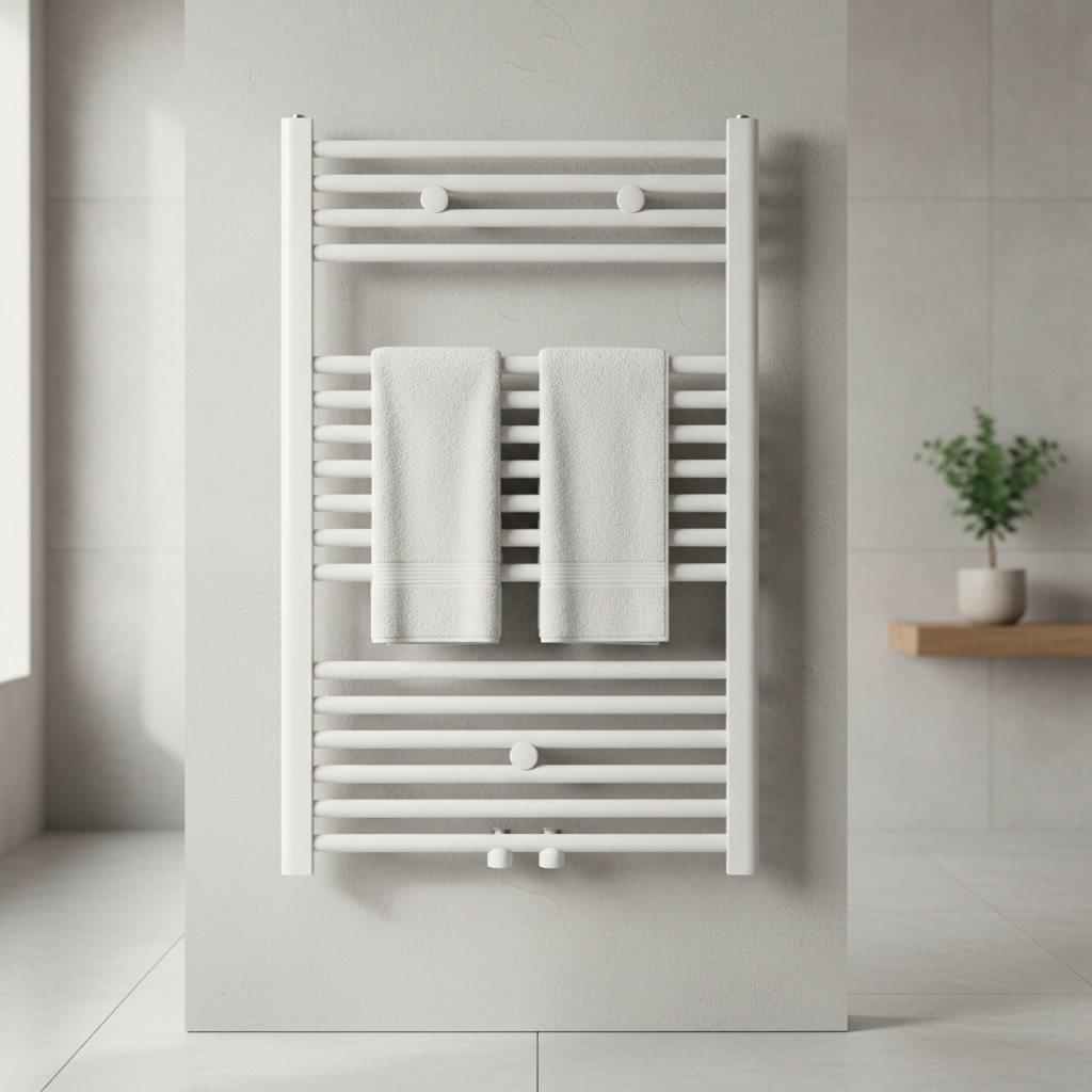 Deze handdoekradiator is meer dan enkel een warmtebron; hij is een stijlvolle upgrade voor uw badkamer of andere ruimte in uw huis. Combineer het comfort van warme handdoeken en het welzijn van een warmere badkamer met een aantrekkelijk design dat zich moeiteloos inpast in elk interieur. De Max Handdoekradiator; uw garantie voor luxe, comfort, en duurzaamheid.