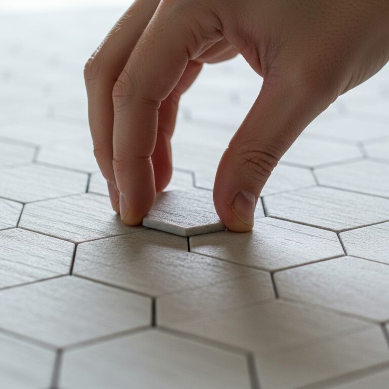De overgang tussen de twee tegelsoorten is cruciaal voor het eindresultaat. In plaats van een harde, rechte lijn kun je kiezen voor een ‘uitwaaierende’ overgang. Hierbij laat je de hexagon tegels op een onregelmatige manier overlopen in de rechthoekige (houtlook) tegels. Dit versterkt het speelse effect en zorgt voor een vloeiende, organische transitie. Het vergt wat extra snijwerk en planning, maar het resultaat is een unieke en creatieve vloer die eruitziet als een waar kunstwerk.
