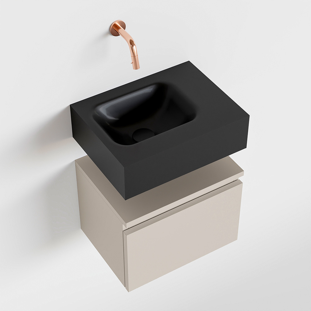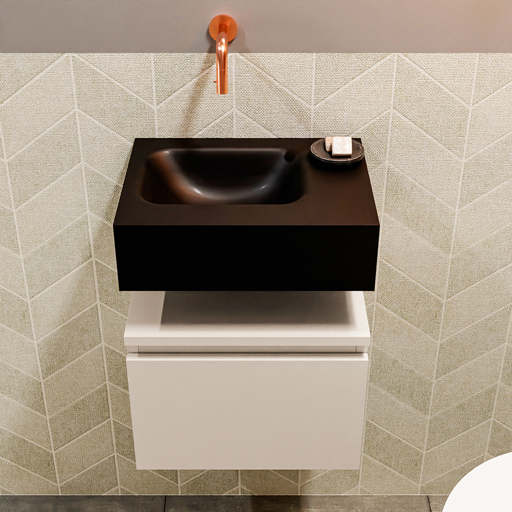 Het moderne zwevende toiletmeubel ANDOR is ontworpen om geen ruimte te verspillen en biedt een eigentijdse uitstraling aan je badkamer. De bijgevoegde afbeelding toont de vrij hangende wastafel LEX, perfect gecombineerd met het bijpassende badmeubel ANDOR. Dit badmeubel is voorzien van één lade met softclose sluiting, wat zorgt voor een geruisloze en zachte sluiting. Bovendien kun je het meubel in verschillende kleuren bestellen, zodat je het kunt aanpassen aan de stijl van jouw badkamer. De flexibiliteit wordt verder vergroot doordat je kunt kiezen uit verschillende posities voor de wasbak en wel of geen kraangat.