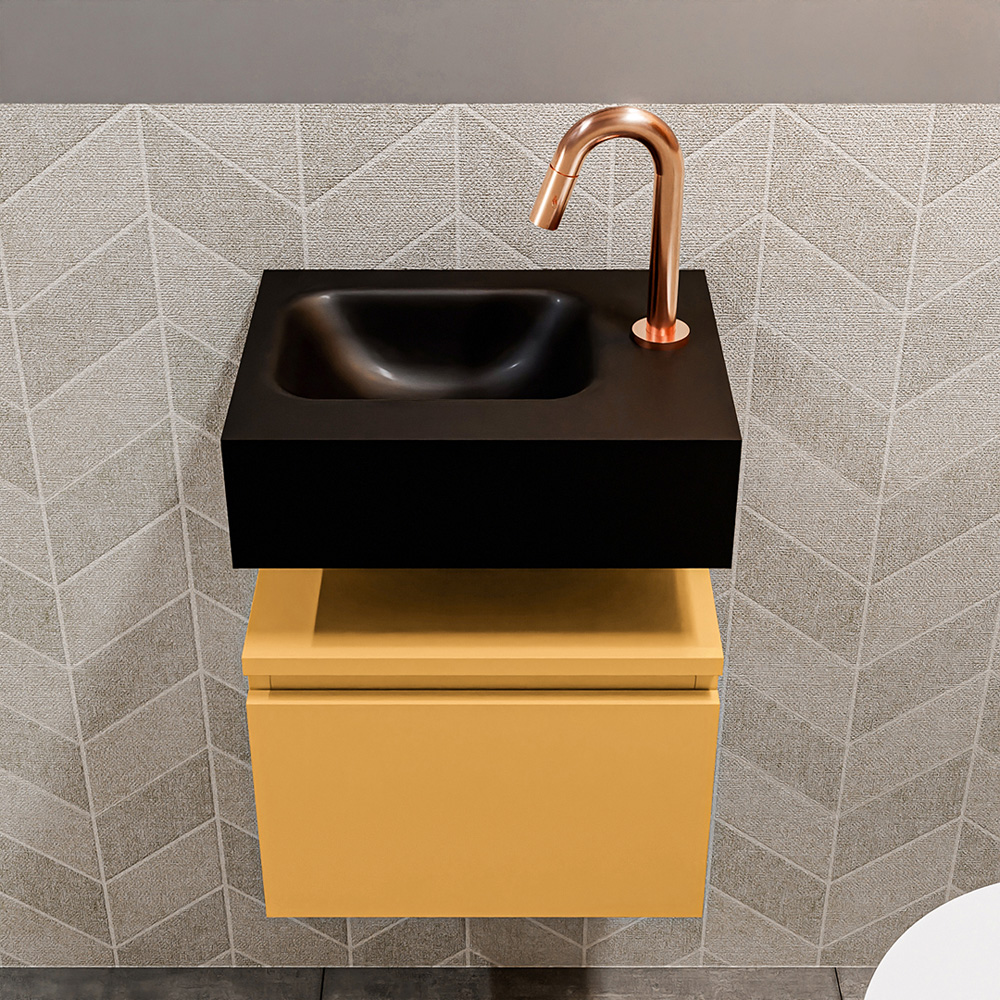 Het moderne zwevende toiletmeubel ANDOR is ontworpen om geen ruimte te verspillen en biedt een eigentijdse uitstraling aan je badkamer. De bijgevoegde afbeelding toont de vrij hangende wastafel LEX, perfect gecombineerd met het bijpassende badmeubel ANDOR. Dit badmeubel is voorzien van één lade met softclose sluiting, wat zorgt voor een geruisloze en zachte sluiting. Bovendien kun je het meubel in verschillende kleuren bestellen, zodat je het kunt aanpassen aan de stijl van jouw badkamer. De flexibiliteit wordt verder vergroot doordat je kunt kiezen uit verschillende posities voor de wasbak en wel of geen kraangat.