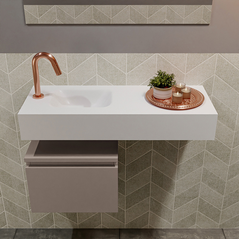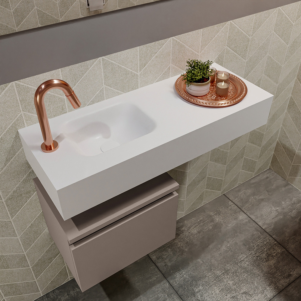 Verfijnd toiletmeubel ANDOR met vrijhangende solid surface wastafel voor een elegante uitstraling!