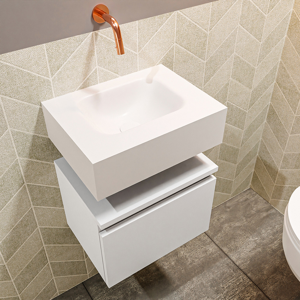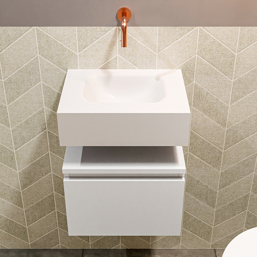 Verfijnd toiletmeubel ANDOR met vrijhangende solid surface wastafel voor een elegante uitstraling!
