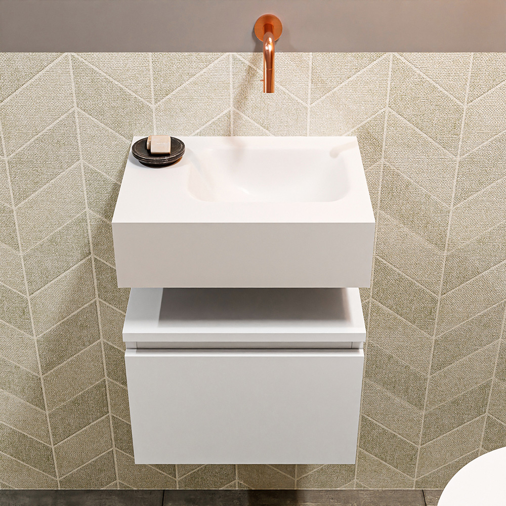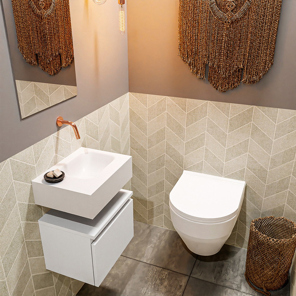 Verfijnd toiletmeubel ANDOR met vrijhangende solid surface wastafel voor een elegante uitstraling!