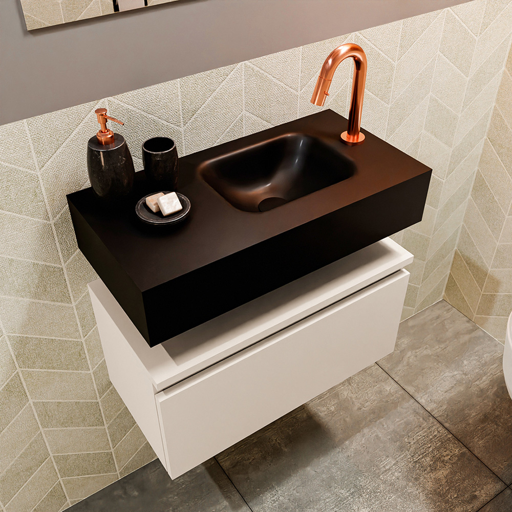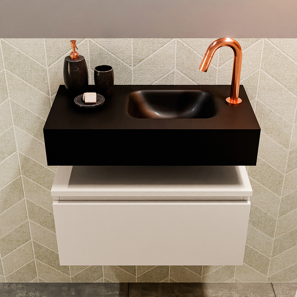 Verfijnd toiletmeubel ANDOR met vrijhangende solid surface wastafel voor een elegante uitstraling!