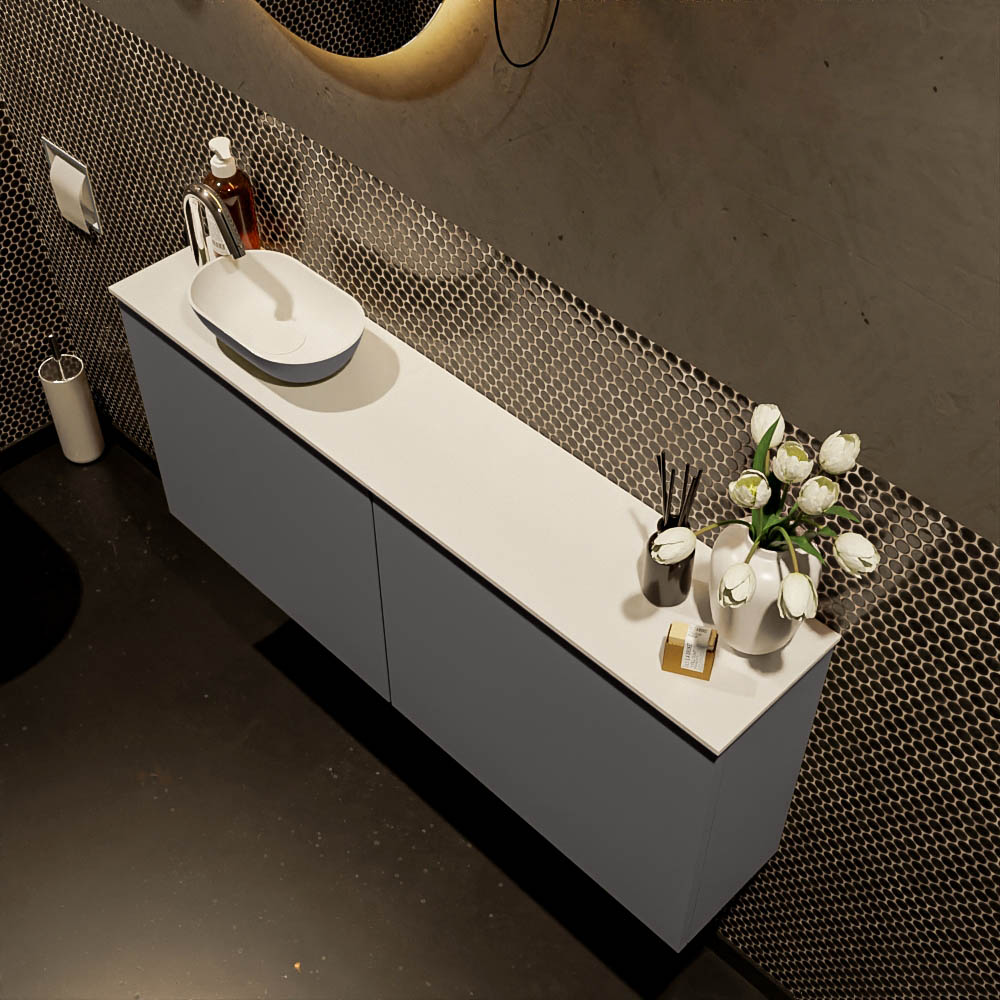 Met zijn fraai vormgegeven kom en elegant bovenblad, vervaardigd uit Solid Surface materiaal, straalt de toiletmeubel set FOWY stijl en klasse uit. De kleur van het kastje met zijn handige push-to-open deurtjes kan harmonieus worden afgestemd op de tint van de wastafelkom. Met deze set transformeert u moeiteloos uw toiletruimte tot een oase van prachtig design en luxe.