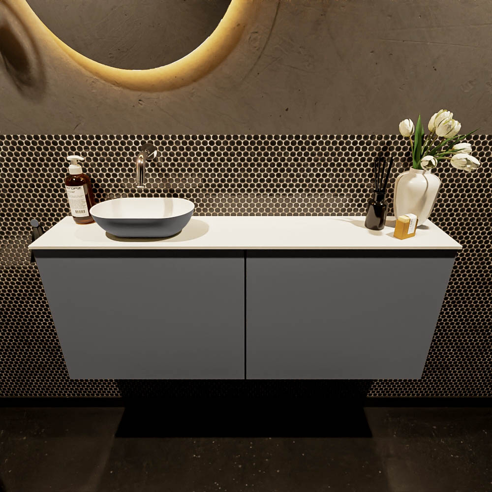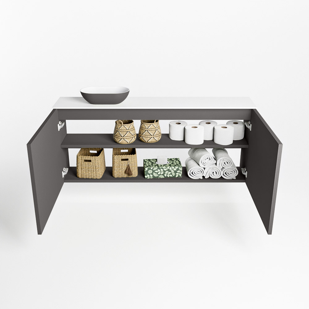 Met zijn fraai vormgegeven kom en elegant bovenblad, vervaardigd uit Solid Surface materiaal, straalt de toiletmeubel set FOWY stijl en klasse uit. De kleur van het kastje met zijn handige push-to-open deurtjes kan harmonieus worden afgestemd op de tint van de wastafelkom. Met deze set transformeert u moeiteloos uw toiletruimte tot een oase van prachtig design en luxe.