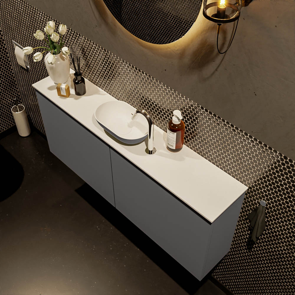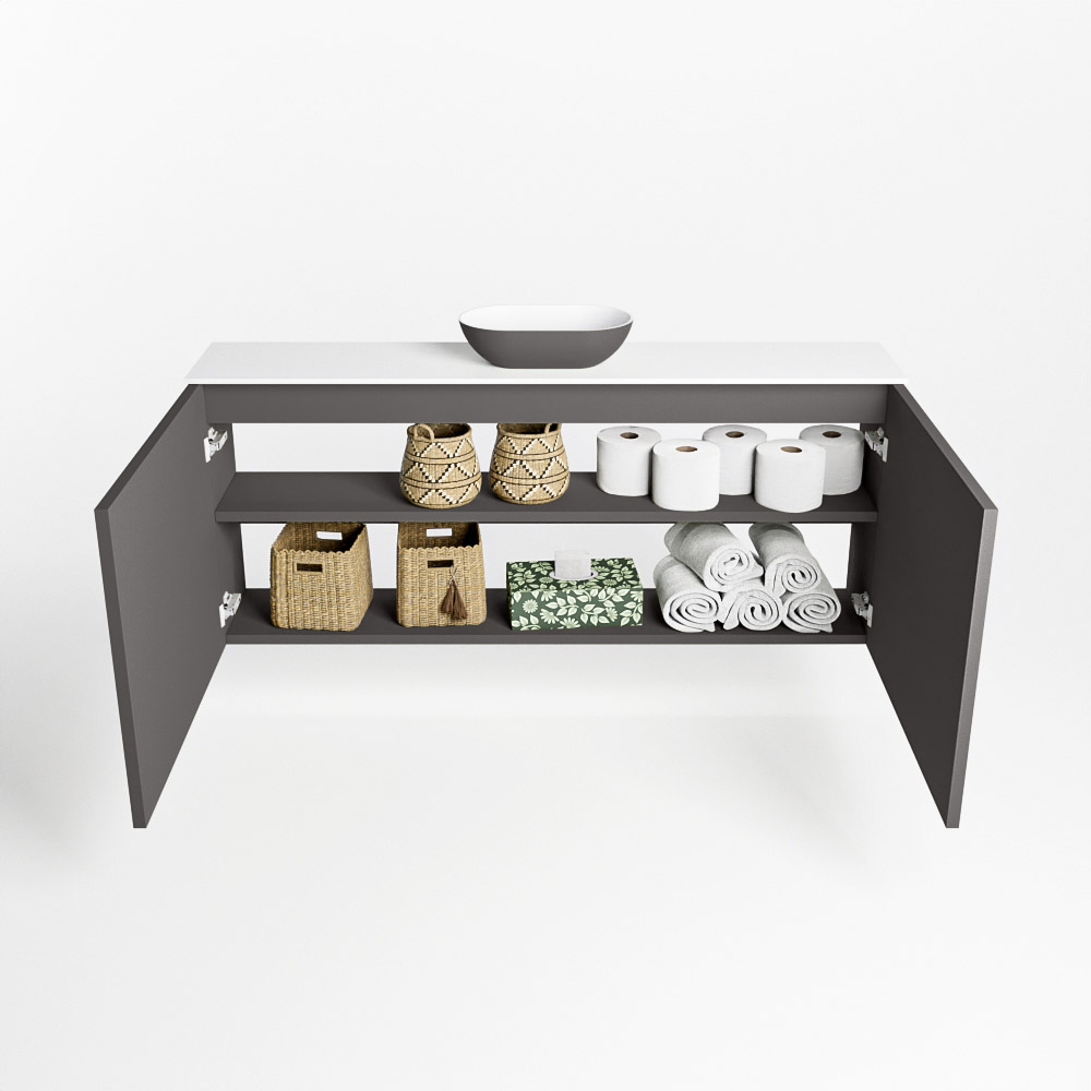 Met zijn fraai vormgegeven kom en elegant bovenblad, vervaardigd uit Solid Surface materiaal, straalt de toiletmeubel set FOWY stijl en klasse uit. De kleur van het kastje met zijn handige push-to-open deurtjes kan harmonieus worden afgestemd op de tint van de wastafelkom. Met deze set transformeert u moeiteloos uw toiletruimte tot een oase van prachtig design en luxe.