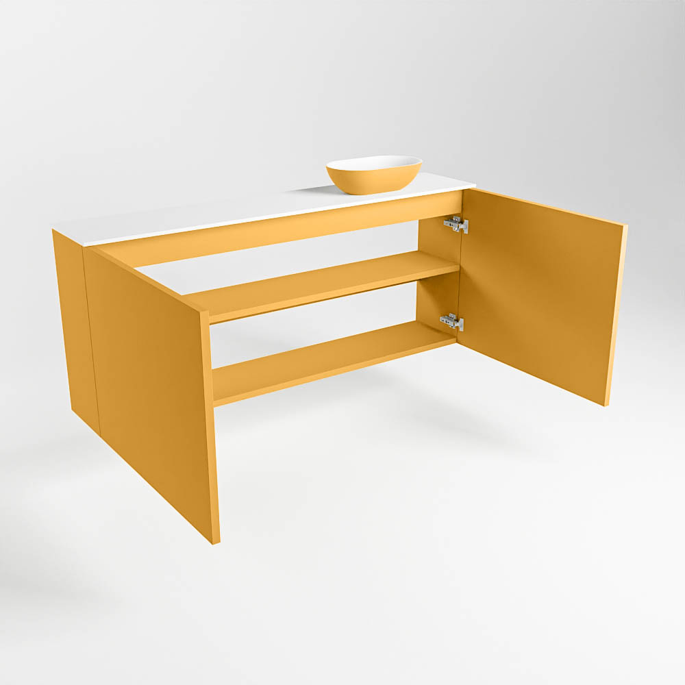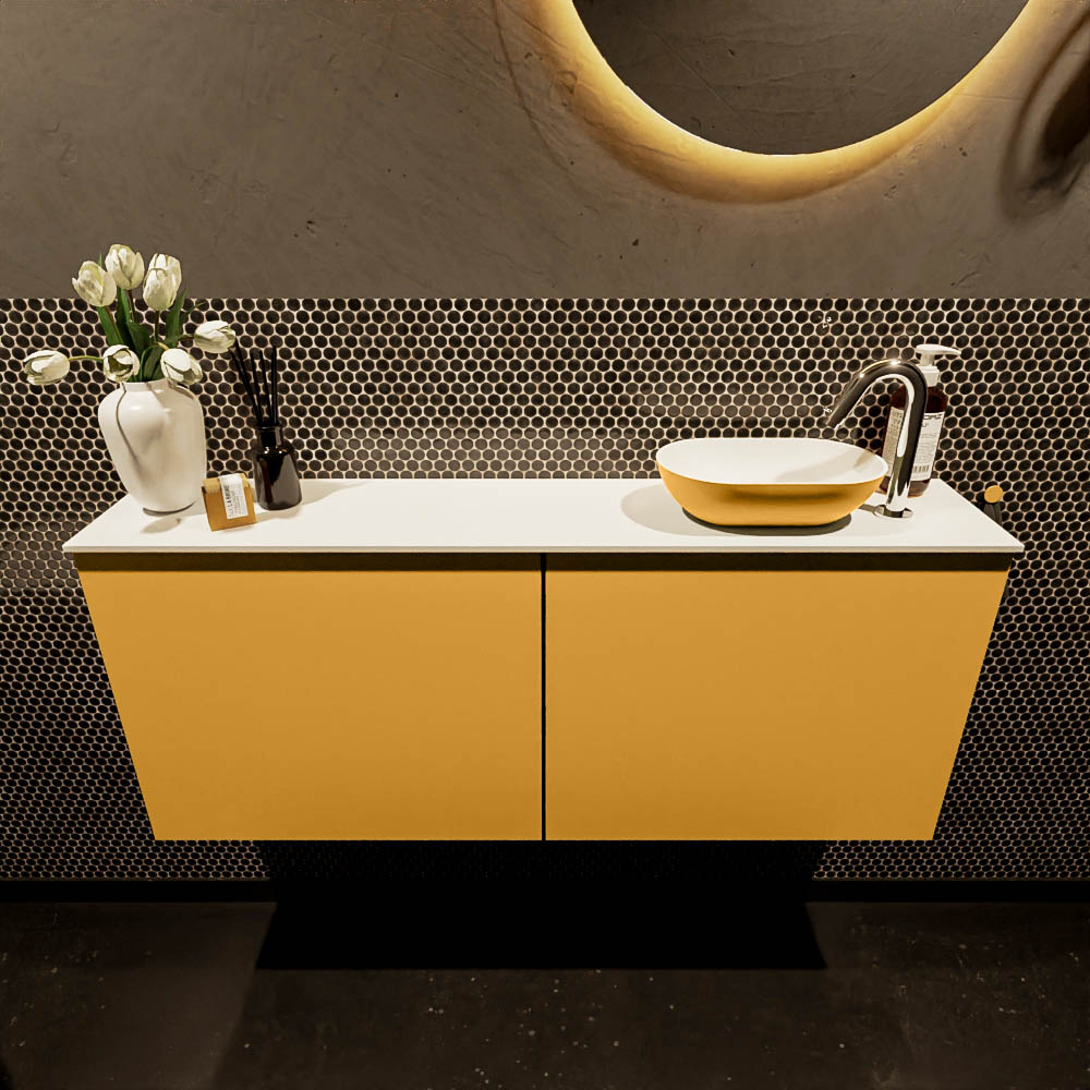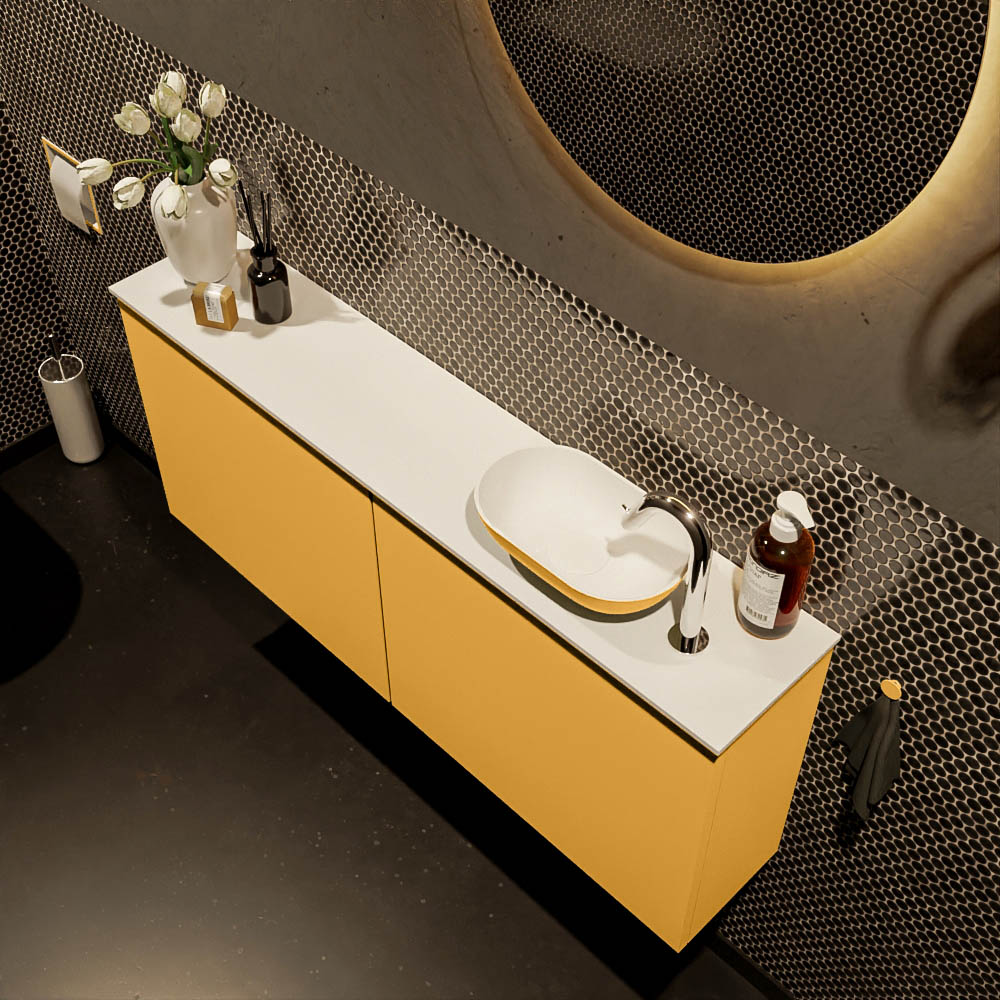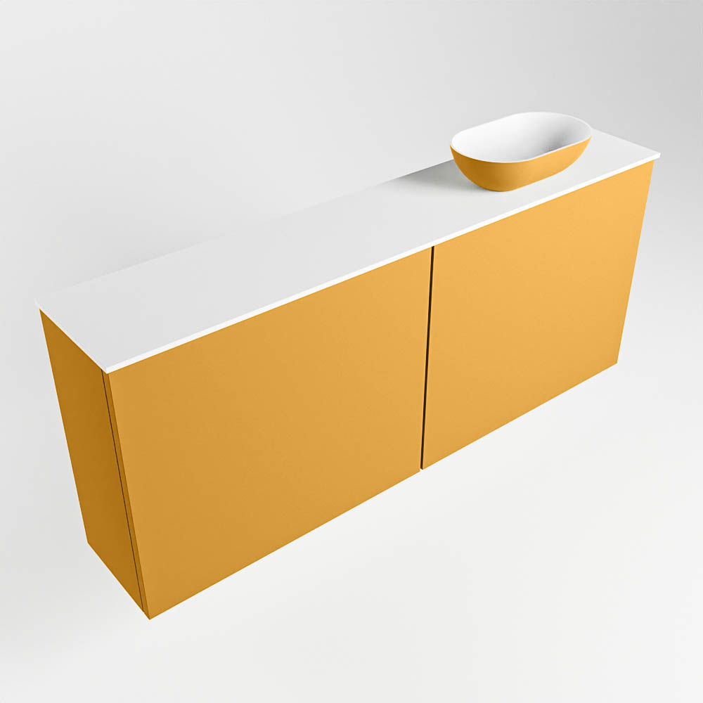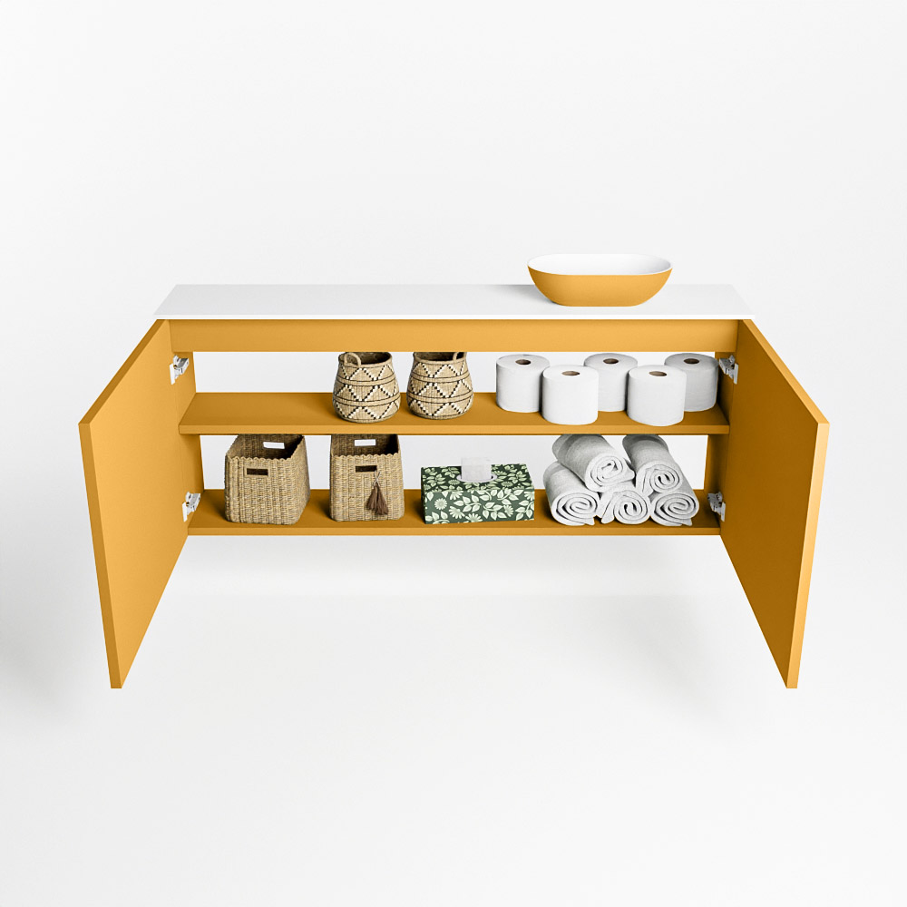 Met zijn fraai vormgegeven kom en elegant bovenblad, vervaardigd uit Solid Surface materiaal, straalt de toiletmeubel set FOWY stijl en klasse uit. De kleur van het kastje met zijn handige push-to-open deurtjes kan harmonieus worden afgestemd op de tint van de wastafelkom. Met deze set transformeert u moeiteloos uw toiletruimte tot een oase van prachtig design en luxe.