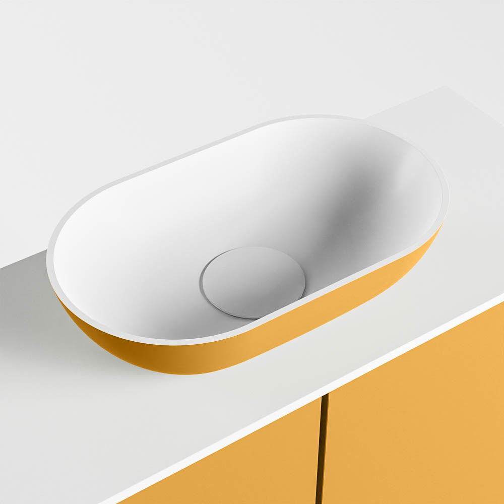 - Let op: de kleur Talc en de kleuren van CORIAN zijn door en door solid surface en kunnen opgeschuurd worden. Alle andere kleuren zijn gespoten en hebben dus een toplaag, die moeten met een zachte spons worden schoongemaakt.