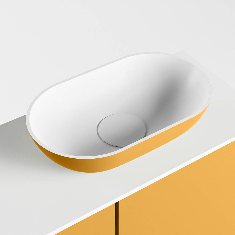 - Let op: de kleur Talc en de kleuren van CORIAN zijn door en door solid surface en kunnen opgeschuurd worden. Alle andere kleuren zijn gespoten en hebben dus een toplaag, die moeten met een zachte spons worden schoongemaakt.