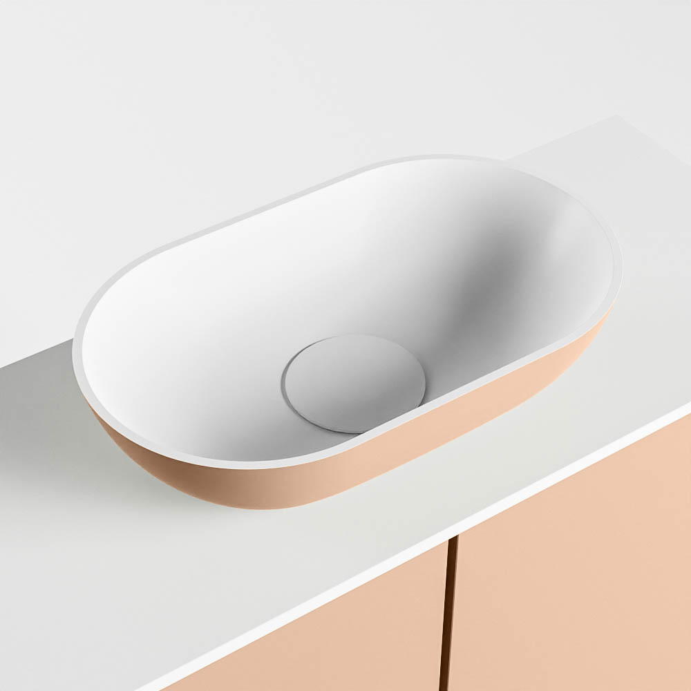 - Let op: de kleur Talc en de kleuren van CORIAN zijn door en door solid surface en kunnen opgeschuurd worden. Alle andere kleuren zijn gespoten en hebben dus een toplaag, die moeten met een zachte spons worden schoongemaakt.