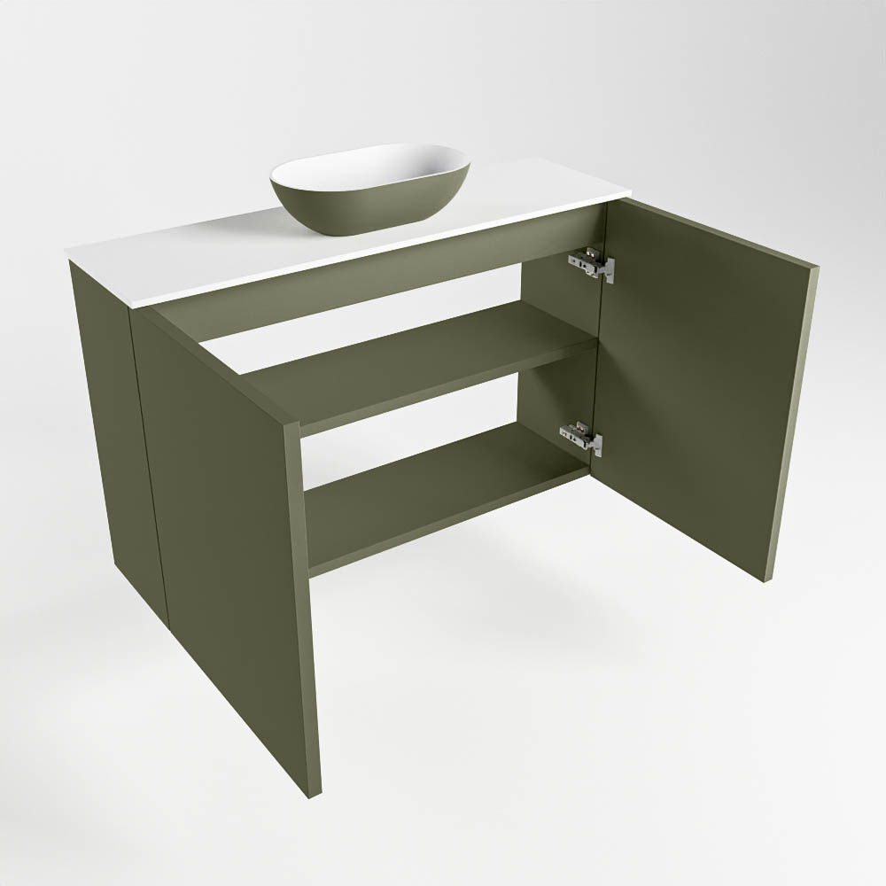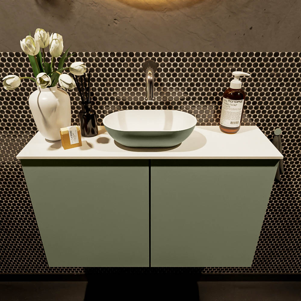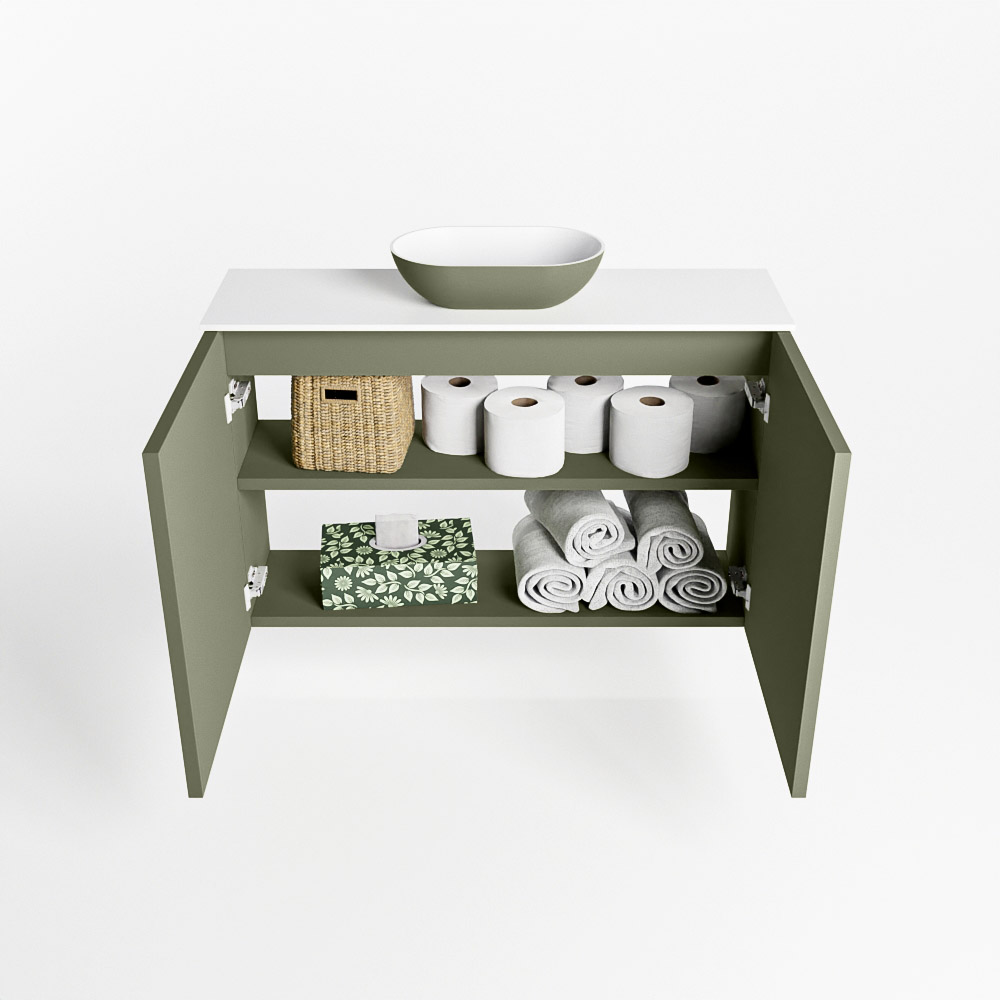 Uw badkamermeubel kunt u het beste schoonmaken door een sopje te maken met een klein beetje sanitair schoonmaakmiddel geen anti kalk of bijtende producten. Wanneer u te veel schoonmaakmiddel gebruikt krijgt u een doffe glans op het meubel. Dan met een licht vochtige doek zachtjes het meubel schoonmaken en na drogen met een droge doek. Let op met het gebruik van microvezeldoekjes, hierin blijven soms harde steentjes plakken waardoor u krassen kunt krijgen op het meubel.