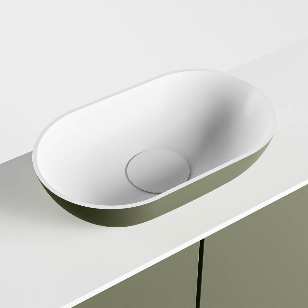 - Let op: de kleur Talc en de kleuren van CORIAN zijn door en door solid surface en kunnen opgeschuurd worden. Alle andere kleuren zijn gespoten en hebben dus een toplaag, die moeten met een zachte spons worden schoongemaakt.