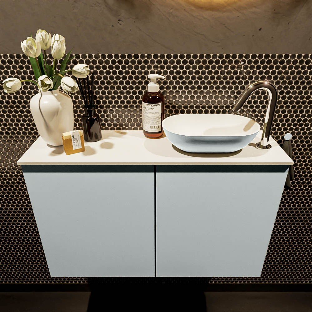 Uw badkamermeubel kunt u het beste schoonmaken door een sopje te maken met een klein beetje sanitair schoonmaakmiddel geen anti kalk of bijtende producten. Wanneer u te veel schoonmaakmiddel gebruikt krijgt u een doffe glans op het meubel. Dan met een licht vochtige doek zachtjes het meubel schoonmaken en na drogen met een droge doek. Let op met het gebruik van microvezeldoekjes, hierin blijven soms harde steentjes plakken waardoor u krassen kunt krijgen op het meubel.