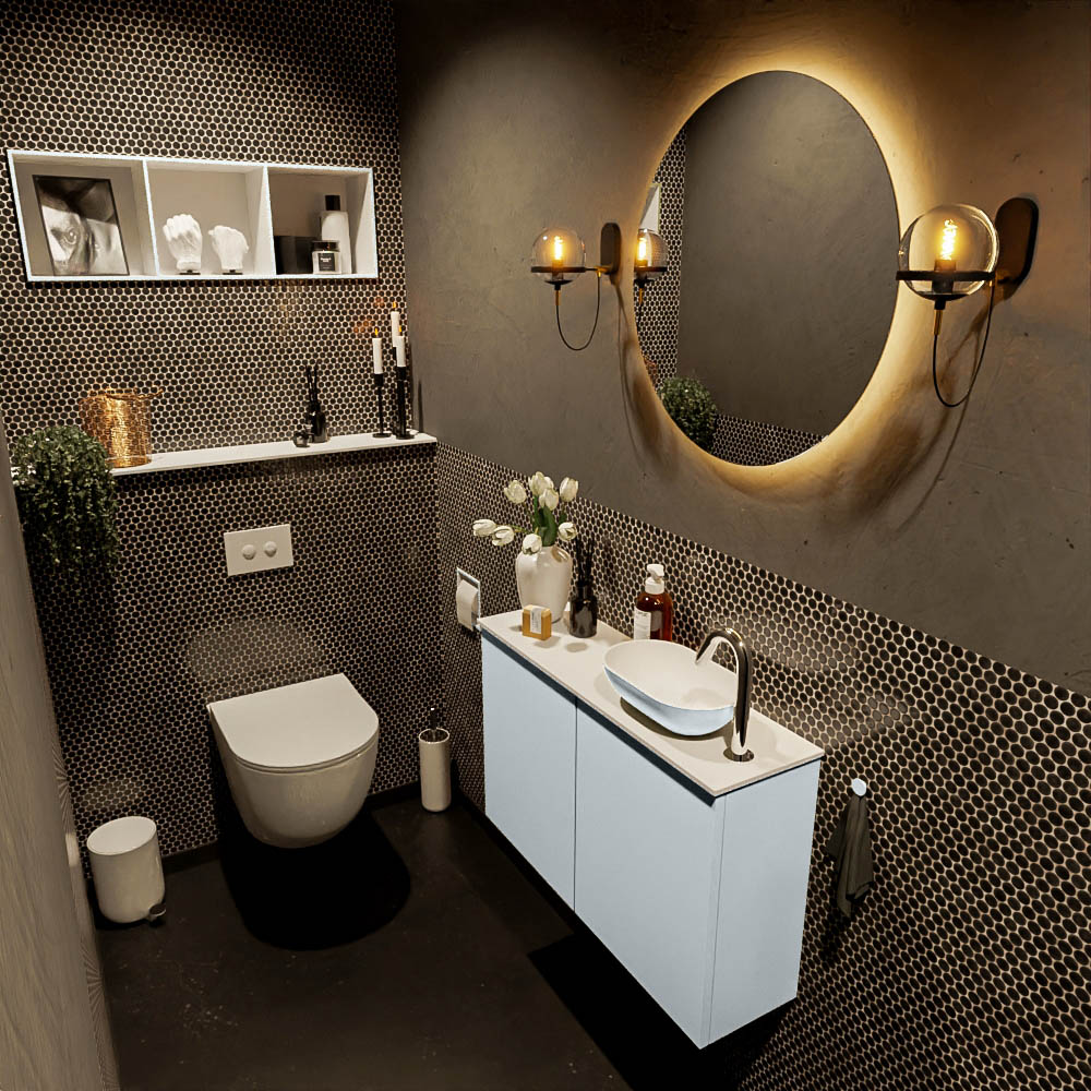 - Het meubel niet direct naast of tegenover een douche staat met douchegordijn en/of zonder douche wand.