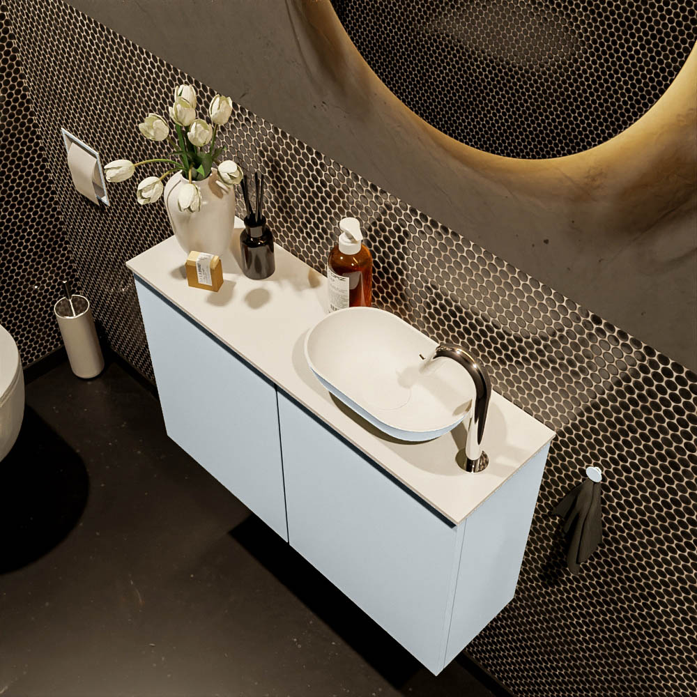 Met zijn fraai vormgegeven kom en elegant bovenblad, vervaardigd uit Solid Surface materiaal, straalt de toiletmeubel set FOWY stijl en klasse uit. De kleur van het kastje met zijn handige push-to-open deurtjes kan harmonieus worden afgestemd op de tint van de wastafelkom. Met deze set transformeert u moeiteloos uw toiletruimte tot een oase van prachtig design en luxe.