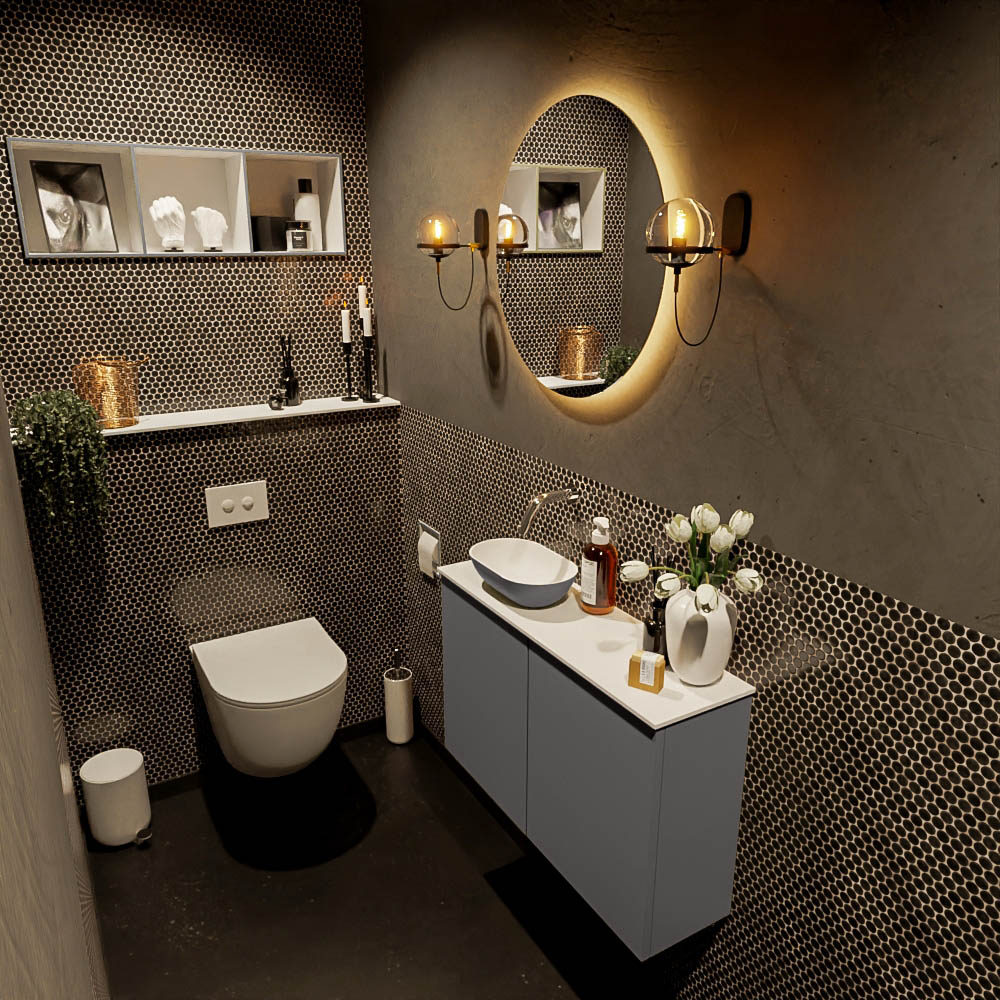 - Het meubel niet direct naast of tegenover een douche staat met douchegordijn en/of zonder douche wand.