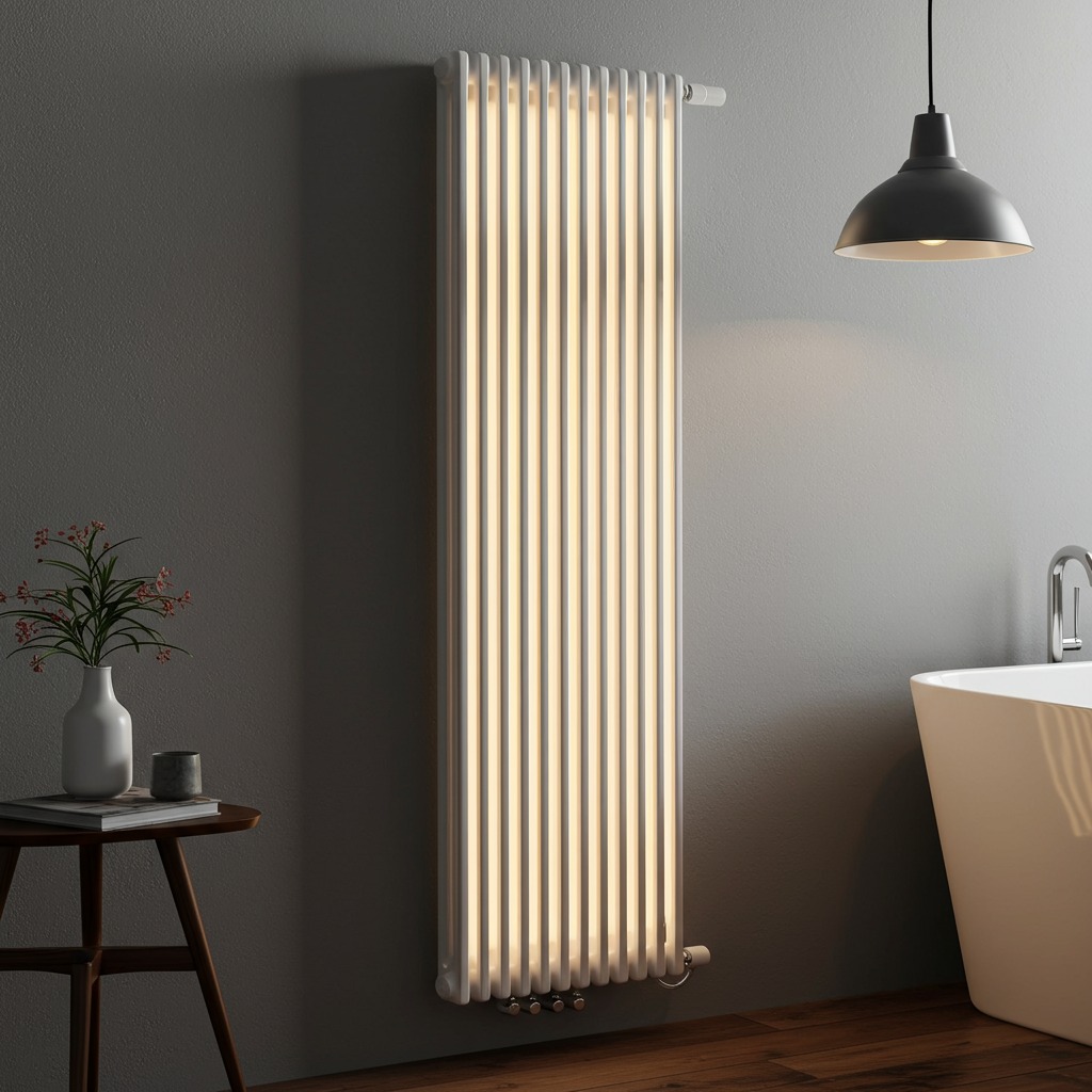 - Op een smalle muur: Verticale radiatoren zijn ideaal voor muren waar je geen brede radiator kwijt kunt, zoals naast een deuropening of tussen twee ramen in. Zo benut je de ruimte optimaal zonder in te leveren op warmtecapaciteit.
