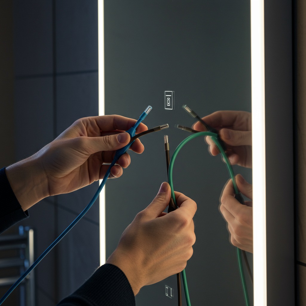 De meeste moderne spiegels hebben de bedrading voor verlichting en verwarming intern al gecombineerd. Je hoeft daarom meestal maar een enkele set van drie draden (fase nul aarde) aan te sluiten op het 230V-punt in de muur.