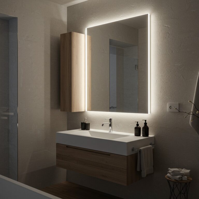 Een spiegelkast met verlichting is een andere upgrade die je badkamerervaring naar een hoger niveau tilt. De verlichting is vaak subtiel geïntegreerd aan de bovenkant, zijkanten of zelfs achter de spiegeldeuren. Dit zorgt voor helder, direct licht op je gezicht, wat essentieel is voor taken als scheren en opmaken. Je hebt geen last van schaduwen, wat bij plafondverlichting vaak wel het geval is. Veel moderne spiegelkasten maken gebruik van energiezuinige LED-verlichting. Vaak zijn deze modellen ook uitgerust met een dimmer of de mogelijkheid om de kleurtemperatuur aan te passen, van functioneel koel licht naar sfeervol warm licht. Een spiegelkast met verlichting combineert de algemene spiegel, opbergruimte én de perfecte taakverlichting in één strak en efficiënt ontwerp.