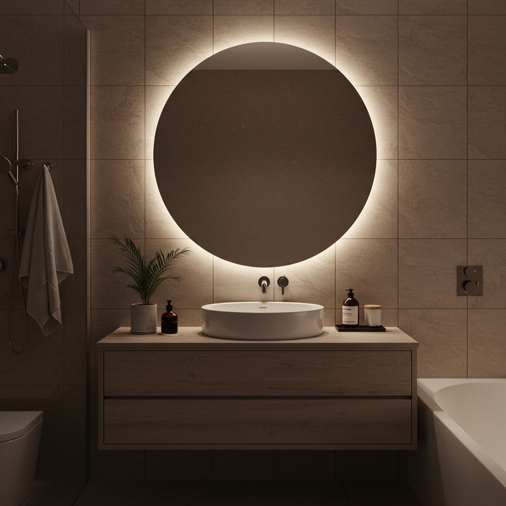 - Focuspunt: Een grote ronde spiegel kan dienen als een prachtig centraal punt boven de wastafel.